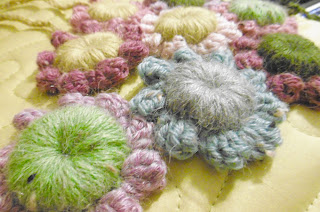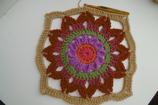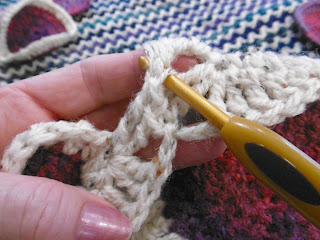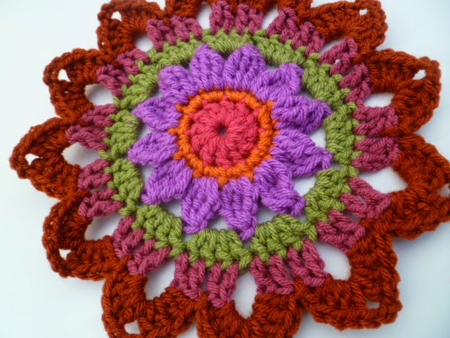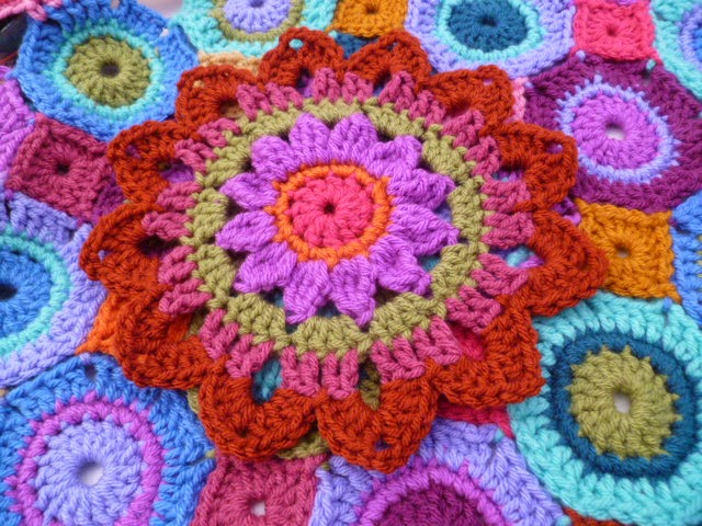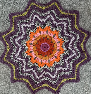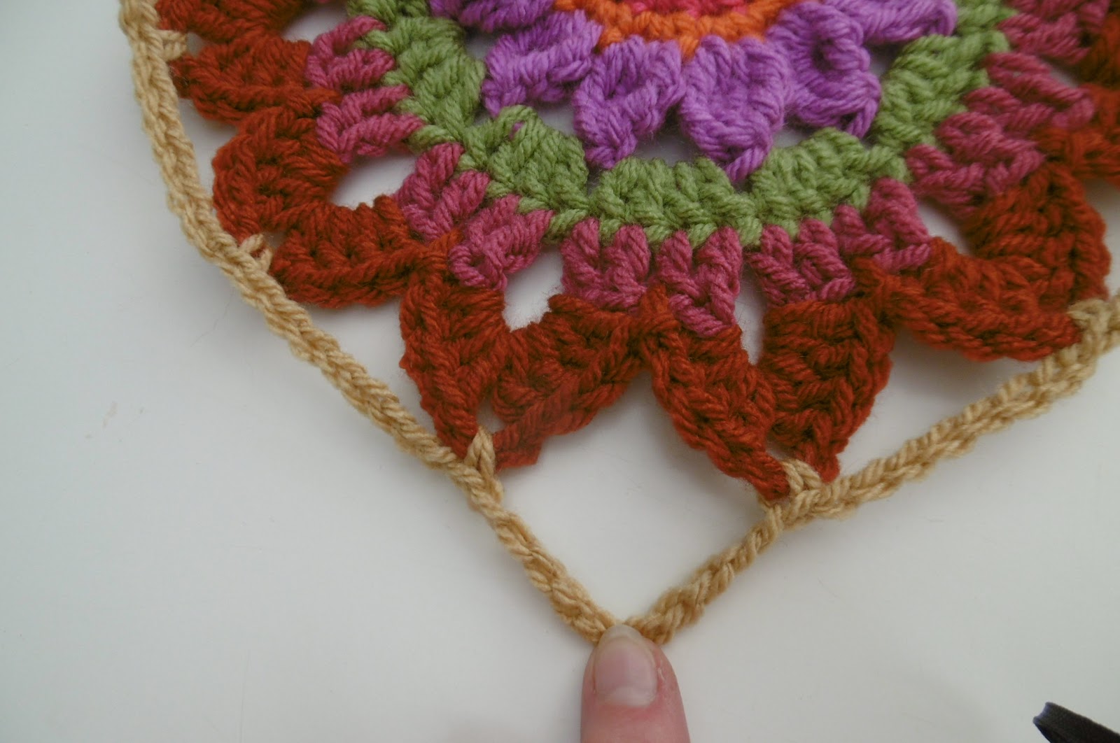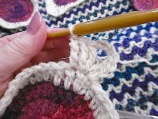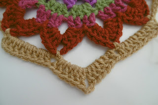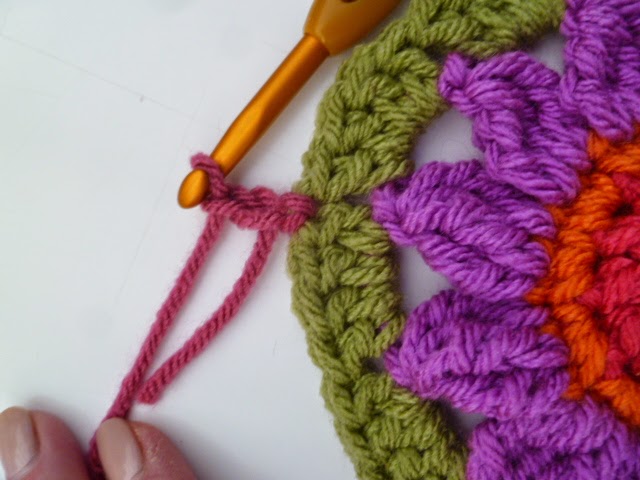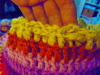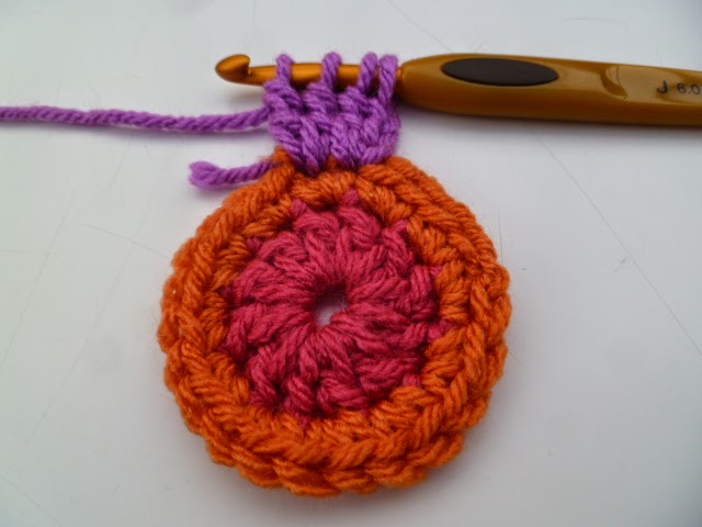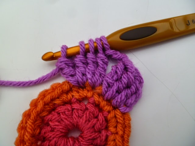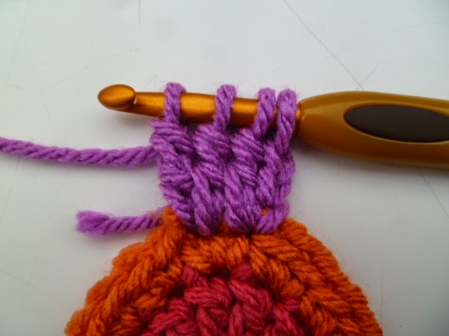Round 3: cont. with first rainbow col. repeat round 2 but with 2 side sp,