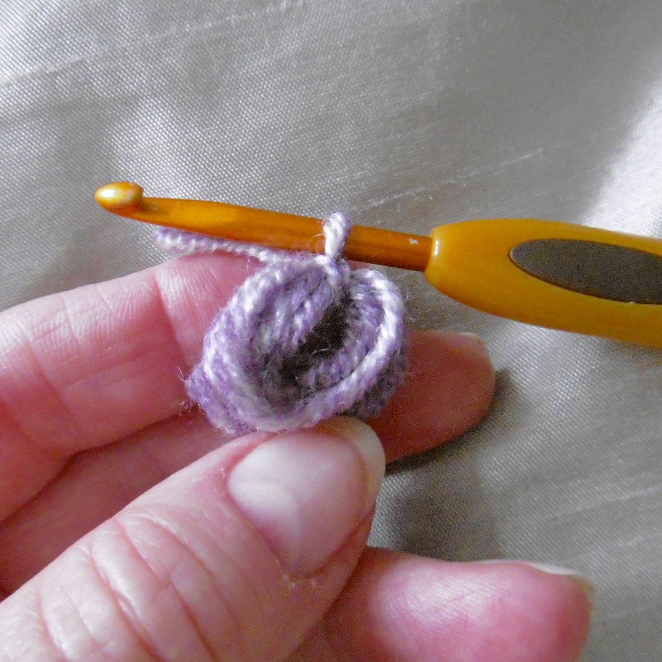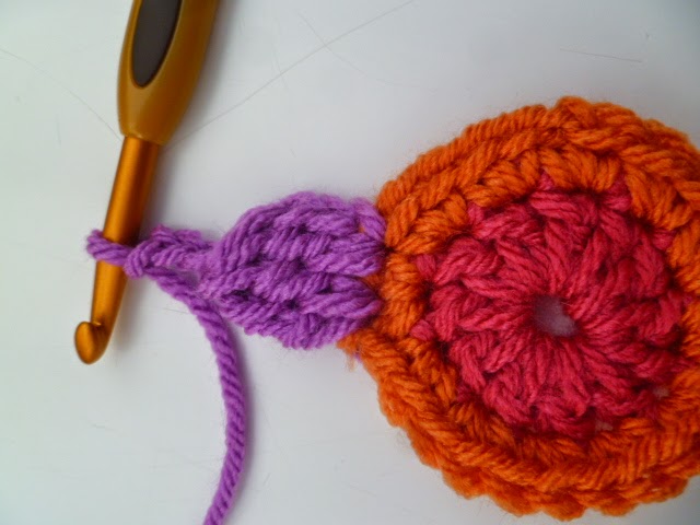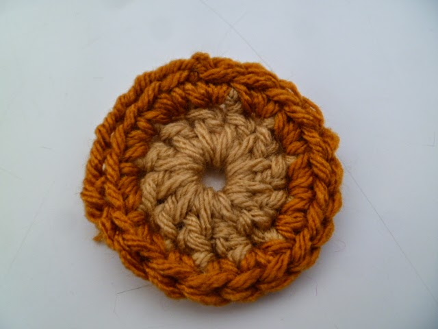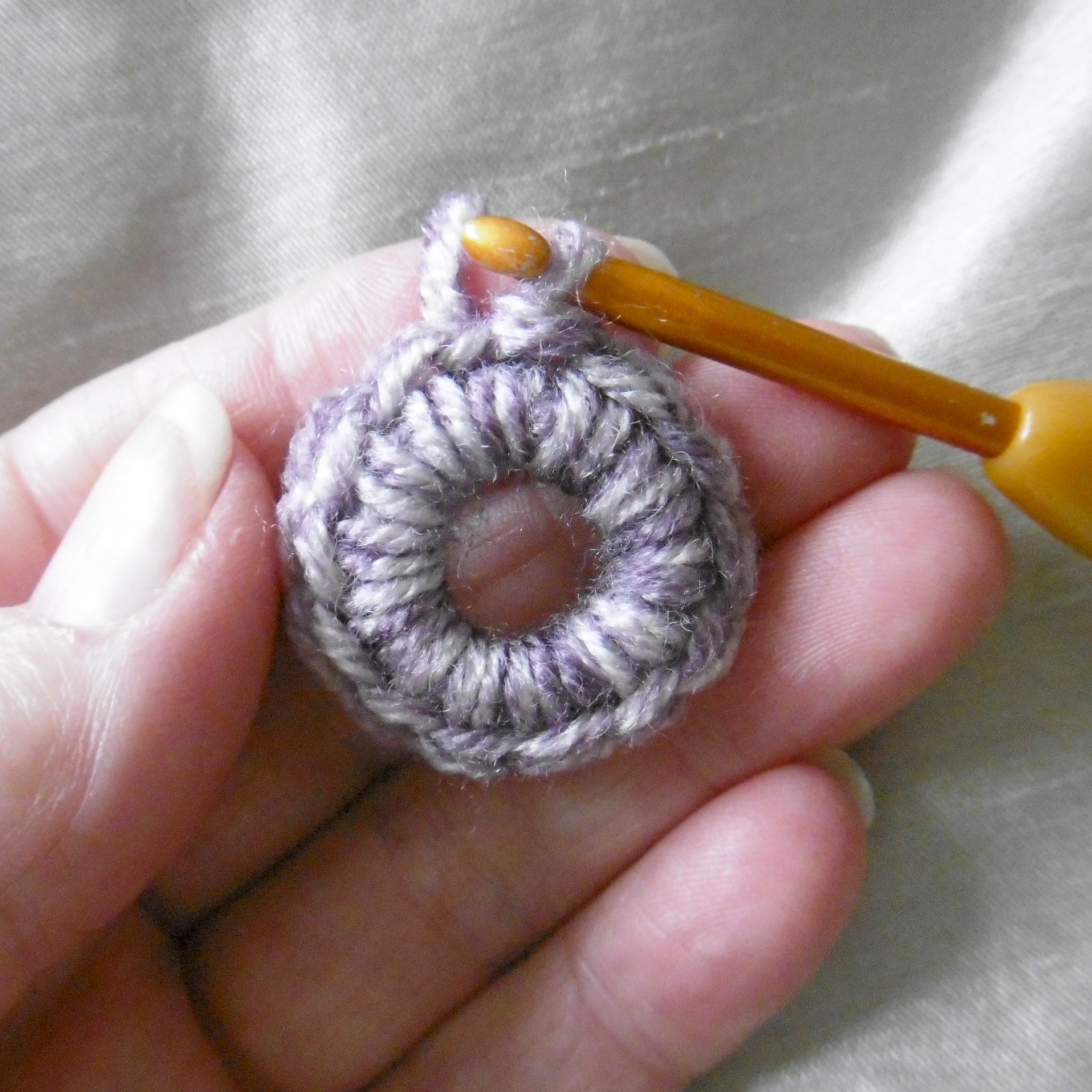 START: CH3 sl st, into a circle. Crochet over the tail as you go.