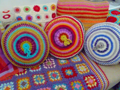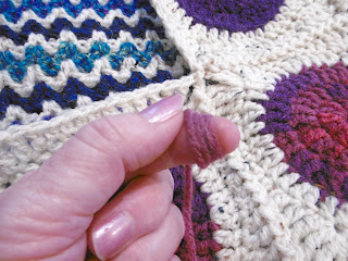All done with the simplest of stitches: Moss stitch in a square no stitch change at all only colour changes in each row