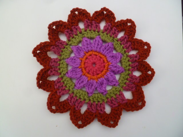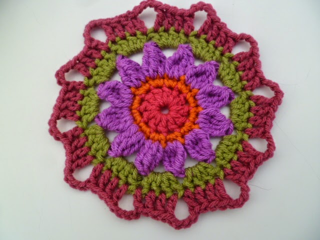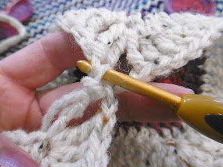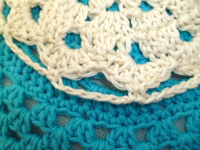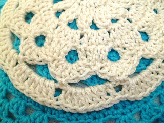 sl st into first corner sp and repeat round 2, ch4, sc in same sp, ch1, sc, ch1 in next 2 side sp, then repeat 3 more times, sc, ch3, sc, in same sp, ch1, sc, ch1, between in next 2, ch1 sp, repeat, sl st into ch4 sp, pull yarn through cut off and weave in end.