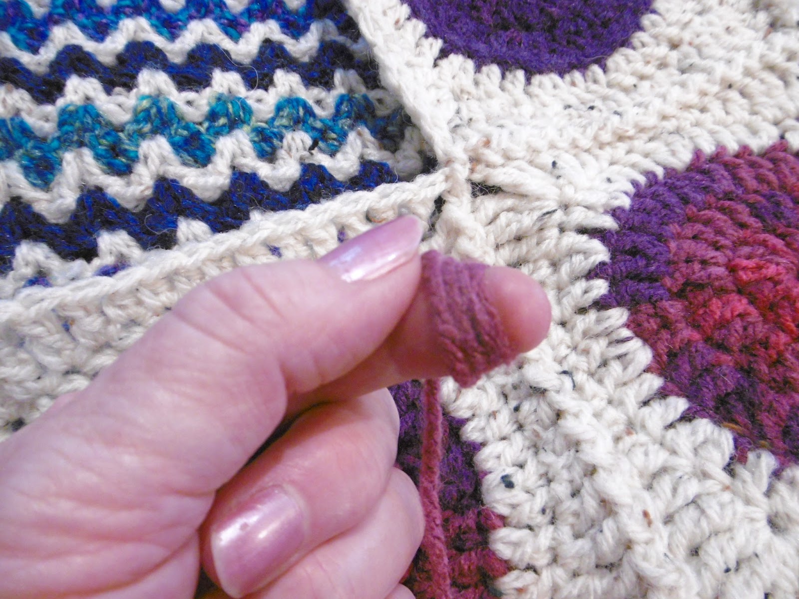 I suffer with arthritis in my fingers and my tension can be all over the place, I found working with a 5mm hook, helped but could make the blanket get a little wavy, so I would use the 4mm hook for a round every 4 or 5 rounds, stopping the edge getting wavy.
