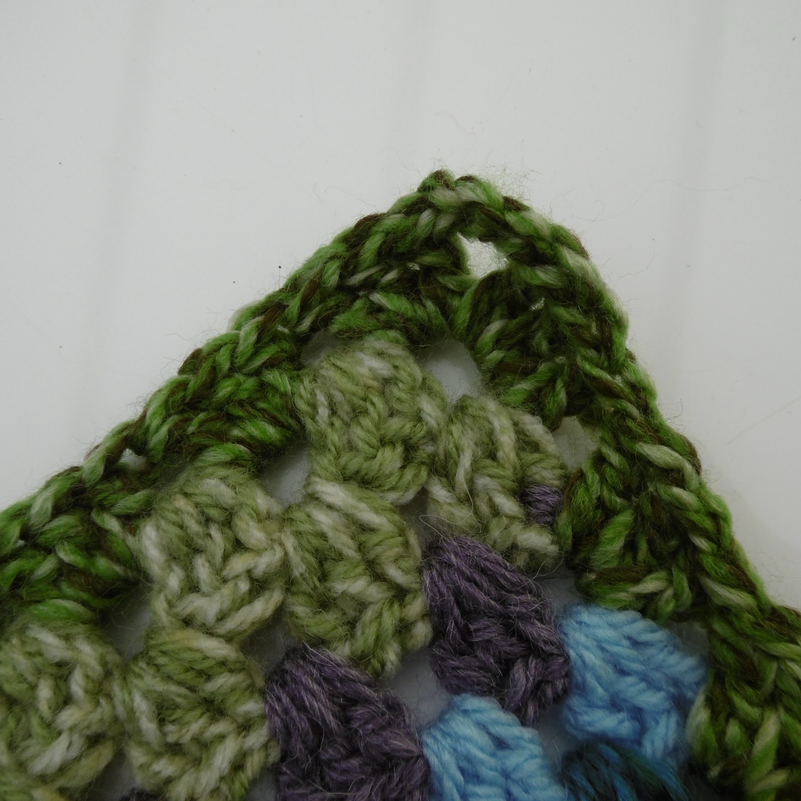 Managed to add 4 rounds of granny shells, green, blue /green purple it changes as it goes around, rose, and burnt orange.